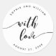 Gastgeschenk Hochzeit Aufkleber mit den Worten "mit Liebe" in einer entspannenden kursiven Schrift in schwarz auf weißem Hintergrund. Personalisieren Sie es, indem Sie den Platzhalter-Text ersetzen. Für weitere Optionen, wie zum Beispiel den Schriftart zu ändern und ihn zu verändern, erweitern Sie die /Contract-Kurve oder den Abstand zwischen den Buchstaben, klicken Sie auf die Schaltfläche "Anpassen". *Bitte beachten Sie, dass das Zazzle-Wasserzeichen, das in der Zoomvorschau angezeigt wird, NICHT auf dem gedruckten Endprodukt erscheint. © Rosewood and Citrus