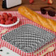 Diese quadratische Papierplatte weist ein schwarz-weißes Schachbrettmuster aus den 70er Jahren auf. Genau richtig für ein Retro - inspiriertes Party. Einzigartig entworfen von Alma Wad.