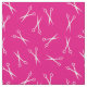 Warmes rosa Gewebe mit einem modernen Muster der Schere in Weiß. Perfekt für Friseur, Friseur und Ähnliches.
