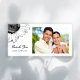 Passen Sie die hübsche Schwarz-Weiß-Sonnenblume Hochzeit Dankeschön Fotokarte mit Ihrer persönlichen Dankesbotschaft, Dankbarkeit und Ihrem Foto an. Geeignet für Geschenke, die nach einer Geburtstagsfeier, Brautparty, Verlobung oder Hochzeit erhalten werden. Diese elegante botanische Danksagung-Fotokarte bietet ein digital erweitertes Blumenfoto mit Schwarz/Weiß-Aufnahmen einer Sonnenblumenblume.