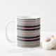 Ein altmodischer Blick auf diese Tasse mit schwarz-weiß lackierten Paneelen und Bändern von heißrosa, die durch sie laufen. Sehr weiblich und mädchenhaft.