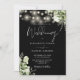 Diese elegante Schwarz-Weiß-Einladung mit hübschen Saitenlichtern und Blumengrün kann mit Ihren Informationen in schicker Typografie mit Ihren Monogramm-Initialen auf der Rückseite personalisiert werden. Entwickelt von Thisisnotme©