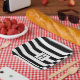 Für ein einfaches und stilvolles Halloween-Fest, das mit schwarz-weißen Streifen betont wird. Fügen Sie Ihren ersten und auch Karo aus der Erholung der Sammlung für die passenden Teller und Papierbecher.