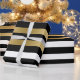 Schwarz-Weiß Streifen Muster mit 2 goldenen Streifen als Akzent. Modernes Design.