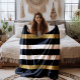 Schwarz-Weiß Streifen Muster Gold Akzente Fleecedecke