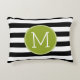 Schwarz-Weiß-Streifen Muster Grüne Monogramm Dekokissen