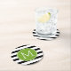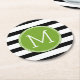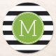 Schwarz-Weiß-Streifen Muster Grüne Monogramm Runder Pappuntersetzer