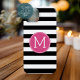 Schwarz-Weiß-Streifen Muster - Hot-Pink-Monogramm iPhone 16 Hülle