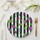Hübsche Teller aus Blumenpapier mit lila, rosa, blauen, aquamarinen und gelben Blumen mit schwarz-weiß gestreiftem Hintergrund. Hübsch für Hochzeiten, Geburtstage oder Babyduschen.