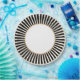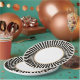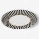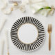 Diese Papierplatte weist einen schwarz-weißen Radialstreifen um den Rand mit einem weißen Zentrum und einem goldenen Rand auf. Ideal für Silvester oder jede andere formelle Ansammlung.