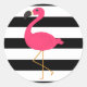 Schwarz-Weiß-Streifen Pink Flamingo Runder Aufkleber