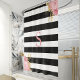 Dieses elegante Design besticht durch Vintage rosa und goldfarbene Blumenbouquets in zwei Ecken auf einem angesagten schwarzweiß gestreiften Hintergrund. Personalisieren Sie es mit Ihrem Initial in rosa Serif Schriftart.