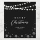 Schwarz-Weiß-String-Lichter Schnee Frohe Weihnacht Weinetikett