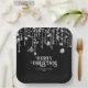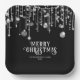 Schwarz-Weiß-Saitenleuchten Glitzern Weihnachts-Party Papier Teller mit einer niedlichen whimsical Spaß Party Einladung für eine festliche Feier.