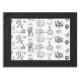 Dieses Tischlein hat Kunst, Motivelemente in einer Toilette, von Kristie Hubler, mit wiederholten Landschaftsclustern von Bäumen, ein Paar tanzend, eine Mutter und ein Kind, Vögel, die sich in einem herzförmigen Weinreben küssen, eine verlassene Burgruine, Lämmer gegen einen Zaun, ein Hahn auf einem Baumstamm, Hyazinth, Heißluftballon