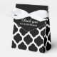 Vielen Dank an die Kunden mit einem besonderen Geschenk oder Leckerei mit diesem schlichten eleganten marokkanischen Trellis Stil Schwarz-Weiß-Design. Ideal für Firmengeschenke für Kunden oder Mitarbeiter. Passen Sie mit Ihrem eigenen Namen oder Firmennamen und Dank an. Kann auch für Gastgeschenke Hochzeiten oder Geburtstagsfeiern mit Süßigkeiten oder Geschenken verwendet werden. Entworfen von Sarah Trett.