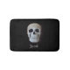 Die Badezimmermatte ist mit Schädelkopf dekoriert. Gotische Schwarz-Weiß, beängstigende, spitzige, individuelle Halloween Wohngestaltung Bad Design. Text, Schriftart Stil, Größe und Farbe können geändert werden. Cool, trendig, modern. Bildrecht Marg Seregelyi Fotografie.