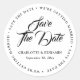 Schwarz-Weiß-Typografie-Hochzeit spart das Datum Runder Aufkleber