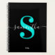 Ein Monogramm in weißem, trendigem Stil, moderne Kalligraphie gepaart mit einem strahlend türkisfarbenen modernen Schriftart. Erhöhen oder verkleinern Sie die für Ihr Monogramm benötigte Größe des Schriftartes. Passen Sie die minimalistisch schwarze Hintergrundfarbe an. Behalt das Format des Schuljahres oder ändere den Anzug deiner Bedürfnisse. Schwarz, Weiß und leuchtend türkis aquamarine personalisierte Planerin für sie.