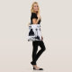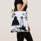 Schwarz-Weiß Winterdesigns auf weißem Totbeutel. Schneeflocken, Ski, Hut & Brillen. Ideal für das Mittag- und Skiausrüstung bis zu den Pisten.