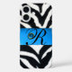 SCHWARZ-WEISS ZEBRA FUR AQUA BLUE GEM MONOGRAM iPhone 16 HÜLLE