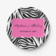 Mit Monogramm Zebra-Muster Hochzeitspapier-Teller mit scharf rosa Akzent.