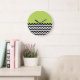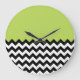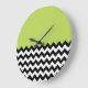 Schwarz-Weiß-Zigzag-Muster, Zickzack, grün Große Wanduhr
