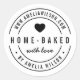Schwarz-Weiß Runde Moderne fett Zuhause gebacken Mit Liebe rund Aufkleber mit dem Wort "Zuhause gebacken" in fett Schriftart, "mit Liebe" in der modernen Schrift, ein niedliches Herz und eine doppelte Grenze für Ihre Web-Adresse und Name in zwischen ihm in fett, dass leicht zu personalisieren ist. Es ist perfekt für Zuhause-Bäcker. Personalisieren Sie es, indem Sie den Platzhalter-Text durch Ihren Namen und Ihre Webadresse ersetzen. Für weitere Optionen, wie zum Beispiel den Schriftart zu ändern, ist es die Größe, Abstand zwischen den Buchstaben und zu erweitern oder zu kontrahieren gekrümmten Text klicken Sie auf die Schaltfläche "Anpassen". *Bitte beachten Sie, dass das Zazzle-Wasserzeichen, das in der Zoomvorschau angezeigt wird, NICHT auf dem gedruckten Endprodukt erscheint. © Rosewood and Citrus