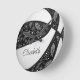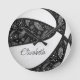 Diese niedliche Basketballuhr zeigt das realistische Bild eines Basketballs, der abwechselnd schwarz-weiß aufgefärbte Basketballfelder mit zarten doodle Blume, Federn und Paislien hat, die auf den schwarzen Basketballplatten gemustert sind - personalisieren Sie den Namen der Sportlerin für ihren Basketballraum - von katz_d_zynes