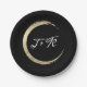 Schwarz-weiße Gold Circle Monogram Initials minima Pappteller