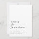 Minimalistisches Foto Schwarz-weiß Hochzeit. Verfügbar in digitaler Form oder gedruckt. Ein informeller, zeitgenössischer Stil mit viel weißem Raum für minimale Eleganz! Ihre Namen sind groß in stilvollen Kleinbuchstaben mit den Details unten. Personalisieren Sie den Text einfach auf Ihre eigenen Daten. Vollständig anpassbar. Sie können Text- und/oder Hintergrundfarben ändern, wenn Sie möchten, indem Sie die Option Weitere bearbeiten verwenden. Ersetzen Sie das Beispiel-Foto auf der Rückseite durch das eigene.