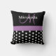 Schwarz-weiße Lila Monogram Script Polka Dots Kissen