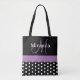 Schwarz-weiße Lila Monogram Script Polka Dots Tasche
