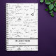 Schwarz-Weiß-Mathematik-Planer für Lehrer und Schüler. Der Hintergrund hat ein Muster handgeschriebener Gleichungen und Formeln. Großartiges Geschenk für Abschlüsse oder Weihnachten. Illustriert und entworfen von Patricia Alvarez.