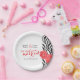 Dieses gewagte, moderne und luxuriöse Hochzeitshotel mit luxuriösen Untersetzer mit schwarz-weißem Streifen und Blatt sowie zwei hellroten Blume auf weißem Hintergrund. Ideal für die Koordination mit einem einfachen Schwarz-Weiß mit einem Hauch von hellroter Hochzeit oder für eine moderne Hochzeit. Bearbeiten Sie diese Art Hochzeit Teller mit Ihrem eigenen Namen und Hochzeitsdatum. Ideal für diejenigen, die moderne Einfachheit und Romantik mögen. Ideal für beide Kirchen, kühne, moderne, rote Themen und einfache Heirat. Eine großartige persönliche Ergänzung zu Ihren Hochzeitstischen oder nach der Hochzeit Snacks. Personalisieren Sie Ihre Brautnamen und Vornamen. Personalisieren Sie Ihre Brautnamen und Vornamen. Einzigartige Kunst und Design von Sarah Trett.