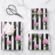 Schwarz-weiße Rosa Blume Streifen Linien Geschenkpapier Set