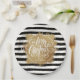 Frohe Weihnachten in schicken, weißen Schriftzeichen auf einem Splash von Imitaten goldene Folie über schwarz-weiße Streifen, diese Papier-Teller sind mit Ihrem Namen personalisiert. PASSENDE Papierservietten und weitere Designs in unserem Geschäft.