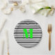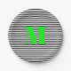 Passen Sie das Neon-grüne Monogramm Schwarz-weiße Streifen Geburtstagsparty Paper Plate an.