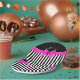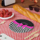 Schwarz-Weiß Streifen mit heißen rosa Satin-Tellern, die sich perfekt für ein Brautparty eignen.