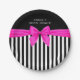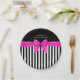 Schwarz-weiße Streifen mit heißrosa Satin-Bug Pappteller