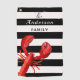 Nautische Streifen in Schwarz/Weiß. Sie ist mit großen roten Hummern dekoriert. Vorlage für Ihren Familiennamen, schwarze und weiße Buchstaben. Fantastisch, elegant und unterhaltsam, perfekt für einen küstennahen Zuhause und Outdor-Wohnraum!