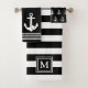 Schwarz-weiße Streifen Monogramm für das Nautische Badhandtuch Set