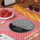 Schwarz-weiße Streifen Pappteller
