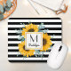 Schwarz-weiße Streifen Sonnenblumenmonogramm Mousepad