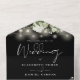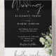 Das Ganze in einer Schwarz-Weiß-Hochzeitseinladung mit hübschen Saitenlichtern, Blumengrün und eleganter Typografie. Die Einladung enthält eine perforierte RSVP-Karte, die für Sie individuell adressiert oder links als leere Karte für die Handschrift der Adressdaten Ihres Gastes verwendet werden kann. Entwickelt von Thisisnotme©