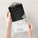 Schwarz-weiße String Lights Floral Monogram Weddin All In One Einladung