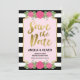 Dieser schicke Rett der Card Invite beinhaltet einen goldenen Rahmen für Imitate, schwarz-weiße Streifen und einige rosa Rosen. Diese Einladung beinhaltet auch eine gemusterte Rückseite. Personalisieren Sie diese Einladung, indem Sie den Platzhaltertext in der Vorlage ersetzen. Für weitere Optionen, wie zum Beispiel den Schriftart zu ändern und seine Größe, klicken Sie auf die Schaltfläche "Anpassen". *Bitte beachten Sie, dass das Zazzle-Wasserzeichen in der Zoomvorschau NICHT auf dem gedruckten Endprodukt © Rosewood and Citrus erscheint
