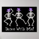 Schwarz-weiße Tanzskelette Happy Halloween Poster