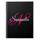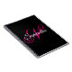 Ein gürteliges personalisiertes Monogramm mit einem extravaganten Kalligraphieskript, das in heiß rosa und weiß mit einem schwarzen Hintergrund in solider Farbe paart. Erstellen Sie Ihr eigenes hübsches Notizbuch, das Sie von hinten in der Schule erhalten können. Passen Sie den Schriftart-Stil mit Farben an, um dem Lieblingsrosa Ihrer Tochter zu entsprechen. Der extravagante blüh, der Teil des Monogramms ist, muss möglicherweise für Ihre Initialzündung neu zentriert werden. Suchen Sie in meinem Shop nach anderen extravaganten Monogrammen in verschiedenen Farbkombinationen.