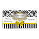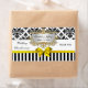 Schwarz-weißer Streifen-Damast-heller gelber Bogen-Band-Party-Wein-Aufkleber